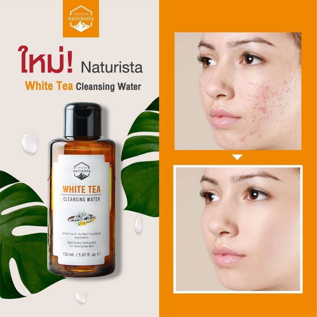Naturista White Tea Cleansing Water คลินซิ่งเช็ดเครื่องสำอาง ทำความสะอาดล้ำลึก ด้วยเทคโนโลยี Nano Deep Clean ช่วยขจัดสิ่งตกค้างบนใบหน้าอย่างล้ำลึก ผสานคุณค่าจากเทคโนโลยี Micellar และเทคโนโลยีการทำความสะอาดถึงระดับเซลล์ผิว เอกสิทธิ์เฉพาะจาก Naturista ช่วยขจัดสิ่งตกค้างในชั้นรูขุมขน ต้นเหตุของปัญหาสิว เนื่องจากสิ่งสกปรกที่อุดตันบนใบหน้า